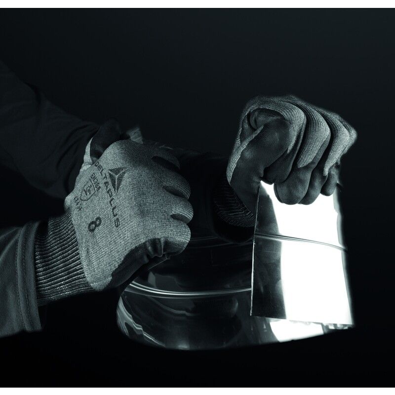 Snijbestendige handschoen van niveau F, die comfort en flexibiliteit combineert voor precisiewerk in olieachtige of waterige omgevingen.