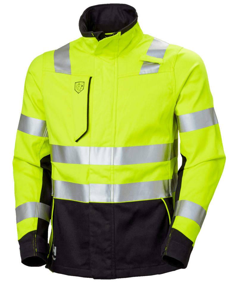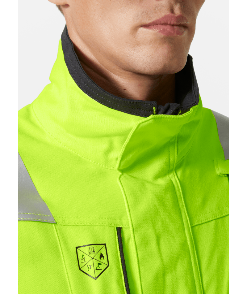 De Helly Hansen Werkjas 77249 is een werkjas waardoor u extra zichtbaar bent voor uw omgeving. Daarnaast beschermt deze jas u tegen hitte en vlammen. Ook beschermt de jas tegen termische gevaren van een elektrisch boog.
