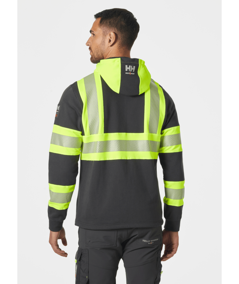 Functionaliteit, compatibiliteit en veiligheidsnormen komen samen in de ICU-hoodie. Het duurzame materiaal, de stevige YKK®-ritsen en classificatie in Klasse 1 maken van dit kledingstuk uw favoriet in uw hoge zichtbaarheidsgarderobe. Deze hoodie past perfect bij het ongeëvenaarde comfort en de onverslaanbare bewegingsvrijheid van onze ICU-collectie.