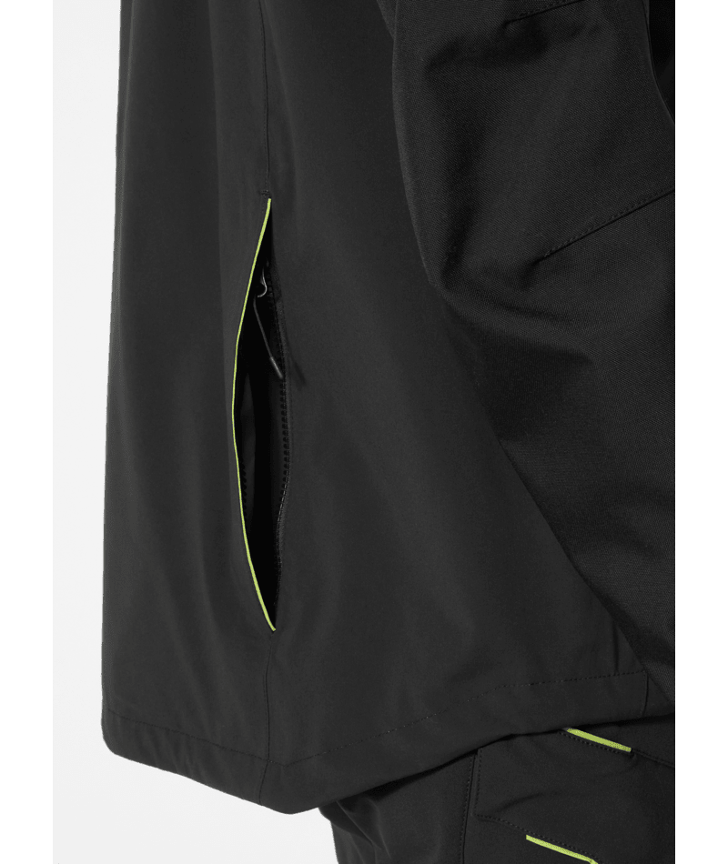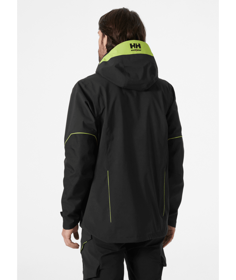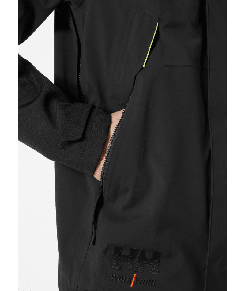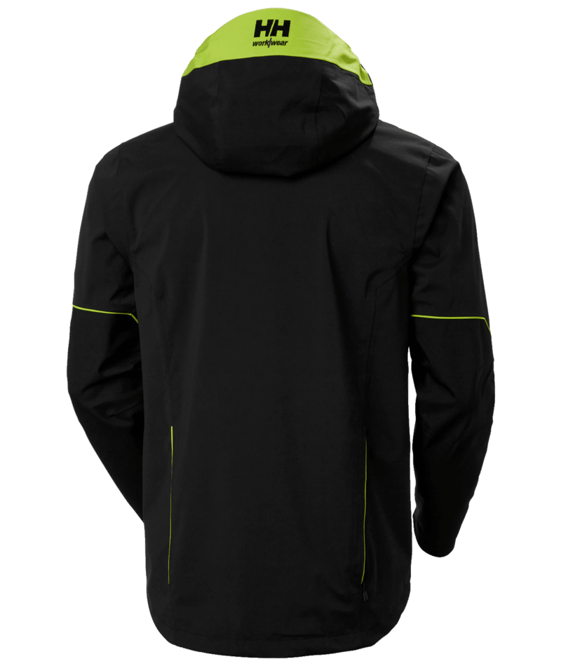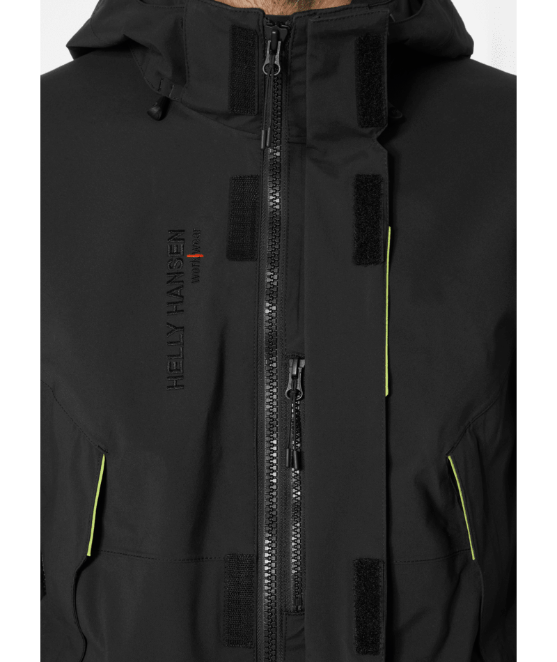 HellyTech®Professional shell jassen met Cordura®-versterking op de schouders en ellebogen, geen schoudernaden, volledig getapet, verlengd rugpand voor verbeterd comfort, volledig verstelbare capuchon, kraag met verstelmogelijkheid middenachter, gewatteerde kraag voor extra comfort, YKK-ritssluiting aan voorzijde met stormklep, lus aan stormklep voor eenvoudig gebruik met handschoenen aan, versterking met geruwd tricot, YKK-borstzak met waterafstotende ritssluiting, handzakken met klep en YKK-ritssluiting, Napoleonzak: toegankelijk zonder de jas te openen, ritssluiting onder armen voor ventilatie, binnenzak van gaas met lycra rand aan bovenzijde, verstelbare taille in zak voor comfort en veiligheid, scharnierende mouwen, asymmetrische manchetten met klittenbandverstelling, lus voor ID-kaart.