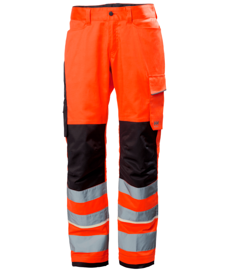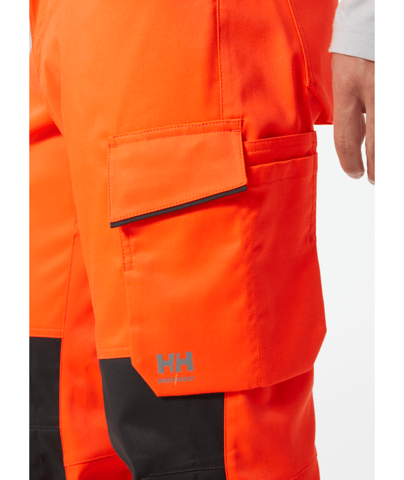 Robuuste werkkleding ontmoet high-tech stof en ontwerp in de Helly Hansen Workwear UC-ME WERKBROEK KLASSE 2. Beweeg comfortabel door je dag in tweeweg mechanische stretchstof met gearticuleerde knieën. Het inzetkruis voegt mobiliteit en stabiliteit aan het kledingstuk toe. Details van professionele kwaliteit, zoals plastic-gecoate metalen knopen en dijbeenzakken met gesloten sluitingen, voegen duurzaamheid toe. Pas je pasvorm aan door kniebeschermers of de lengte van de broekspijpen aan te passen. Kniebeschermerzakken zijn toegankelijk aan de binnenkant van het been. Expertdetails zoals een liniaalzak en een lus voor je ID voegen gemak toe aan je dag. Blijf veilig met hoog-zichtbare stof en brede reflecterende strepen op het onderbeen.