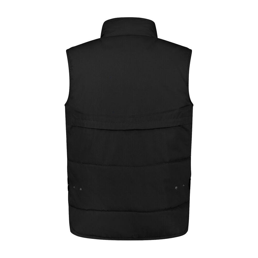 Bodywarmer met windvanger in armsgat, 35% katoen / 65% polyester, 185 gr/m², poplin, gewatteerd, regular fit met opstaande kraag, 5 afsluitbare zakken en binnenzak met knoop, verlengd rugpand en voorzien van printersrits.