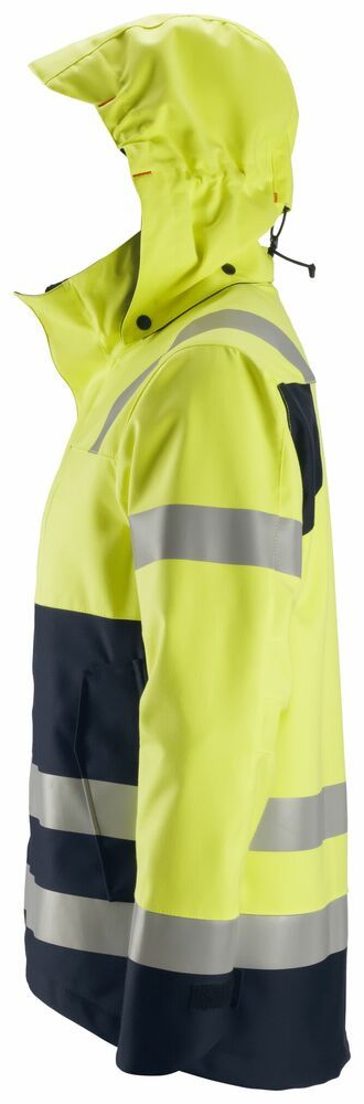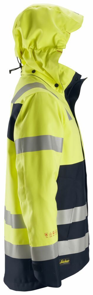 Waterdicht werkjack gemaakt om een hoge zichtbaarheid en persoonlijke bescherming te bieden in risicovolle werkgebieden. Het jack biedt gecertificeerde bescherming tegen elektrische vlambogen en intrinsieke bescherming tegen hitte en vuur en heeft antistatische eigenschappen. Waterdichte stof en getapete naden zorgen voor bescherming in natte en winderige omstandigheden, terwijl voorgebogen mouwen met verlengde mouwuiteinden en een verleng rugpand extra comfort en bescherming geven. Voor volledige weersbescherming moet het jack samen met werkbroek 6563 gedragen worden.