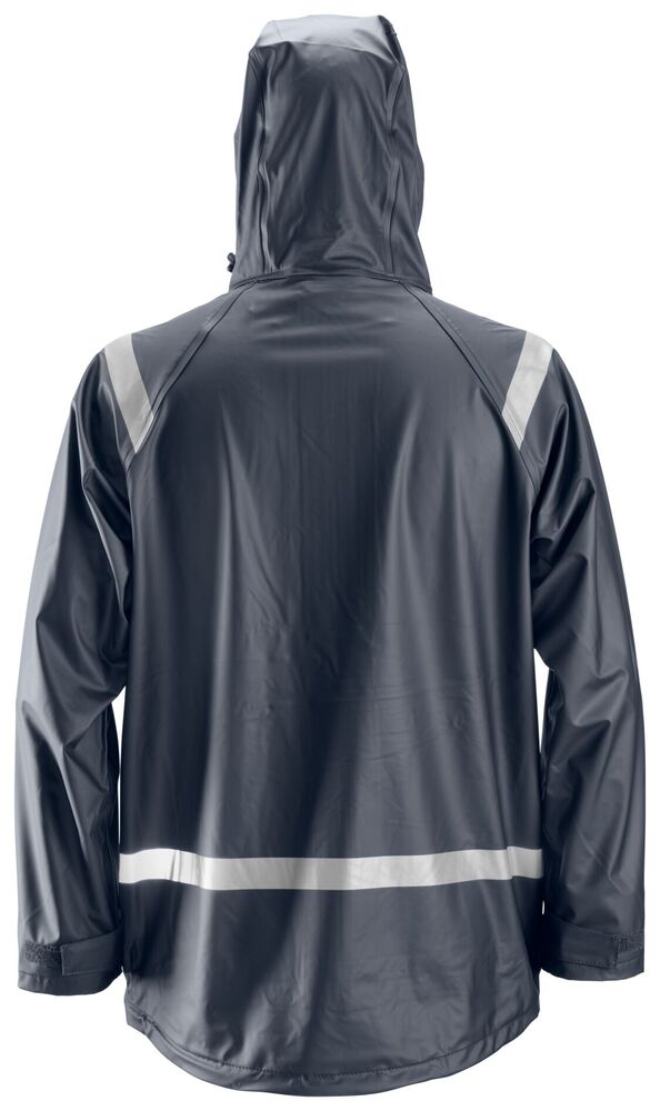 Versla de regen. Draag deze volledig waterdichte PU-gecoate regenjack met gelaste naden voor een 100% droge werkdag. Gemaakt van een soepele en rekbare stof voor superieur comfort. Voldoet aan EN 343.