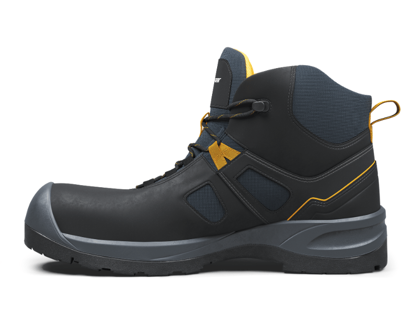 Modern midcut safety boot with built-in comfort in all parts. Upper of LWG leather with nubuck finish and CORDURA® fabric for durability. Moisture transporting and recycled lining for foot climate. Cushioning and breathable open cell PU foam insole. Stable PU midsole with integrated nylon shank. Oil and slip resistant PU outsole designed for great grip on various surfaces. Completely metal free with fiberglass toe cap and soft nail protection. ESD function according to EN IEC 61340-5-1:2016. Upper: LWG leather and CORDURA® Nylon Lining: Recycled Polyester Outsole: Oil and slip resistant PU Midsole: PU Footbed: Open cell PU foam Fit: Wide Sizes: 36-48 Safety standard: EN ISO 20345:2022 S3L, SR, FO Protection: Fiberglass toe cap and soft nail protection