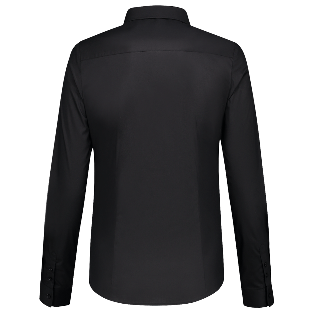 De perfecte basic: Met een goede damesblouse zorg je voor een beetje extra stijl, hierdoor kom je als professional extra goed voor de dag! Deze blouse is vervaardigd uit een fijn geweven stretch kwaliteit en heeft een subtielere kraag en kleinere manchetten dan de blouse met artikelnummer 705002. Daarnaast loopt de knoopsluiting door tot in de hals voor een formelere uitstraling. Dit alles zorgt voor een verbeterde basis pasvorm. De blouse is verkrijgbaar in de kleuren zwart, wit en blauw.