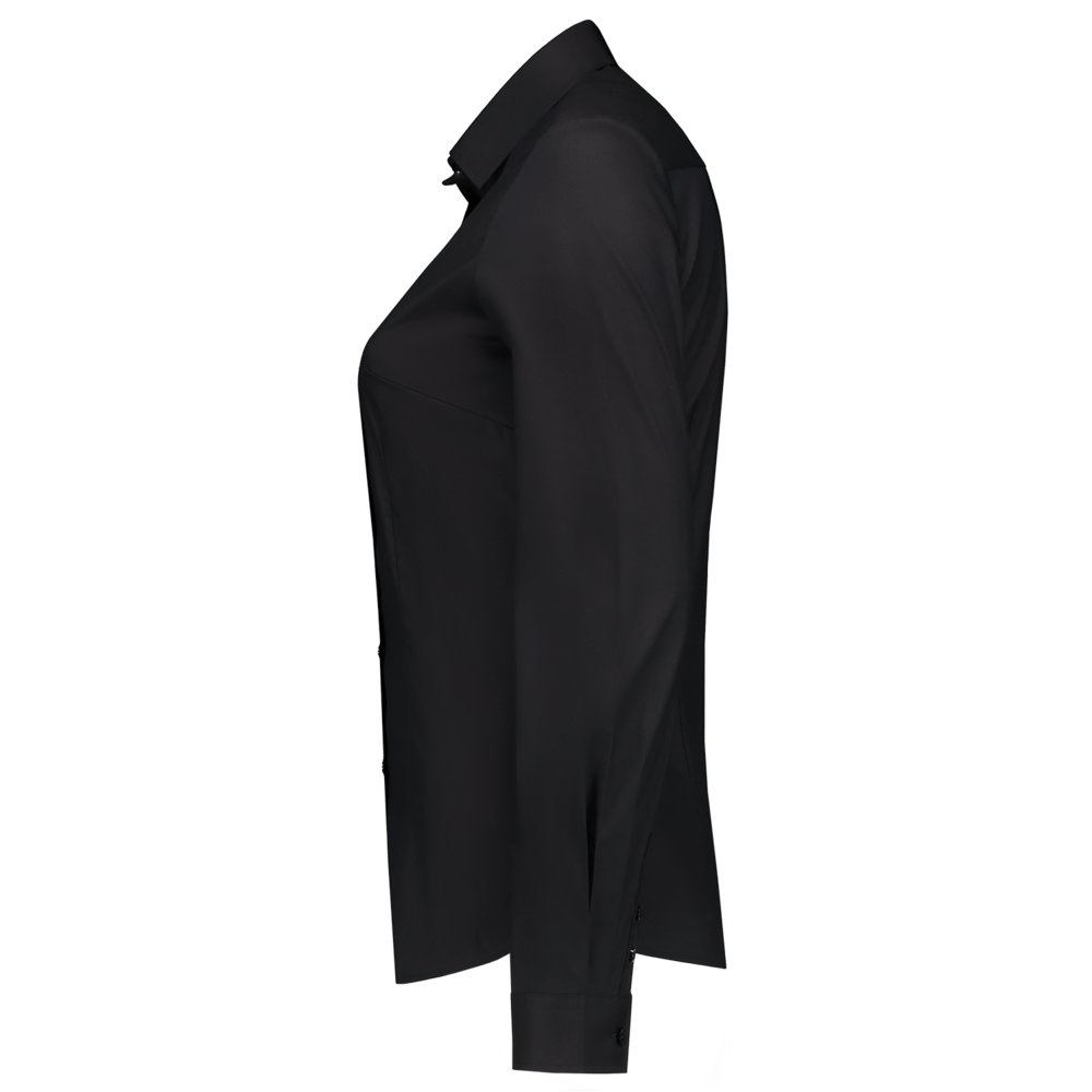 De perfecte basic: Met een goede damesblouse zorg je voor een beetje extra stijl, hierdoor komt de professional extra goed voor de dag! Deze blouse is vervaardigd uit een fijn geweven stretch kwaliteit en heeft een subtielere kraag en kleinere manchetten dan de blouse met artikelnummer 705004. Daarnaast loopt de knoopsluiting door tot in de hals voor een formelere uitstraling. Dit alles zorgt voor een verbeterde fitted pasvorm en valt mooi strak om het lichaam. Door de stretch kwaliteit blijft de bewegingsvrijheid optimaal. De blouse is verkrijgbaar in de kleuren zwart, wit en blauw.