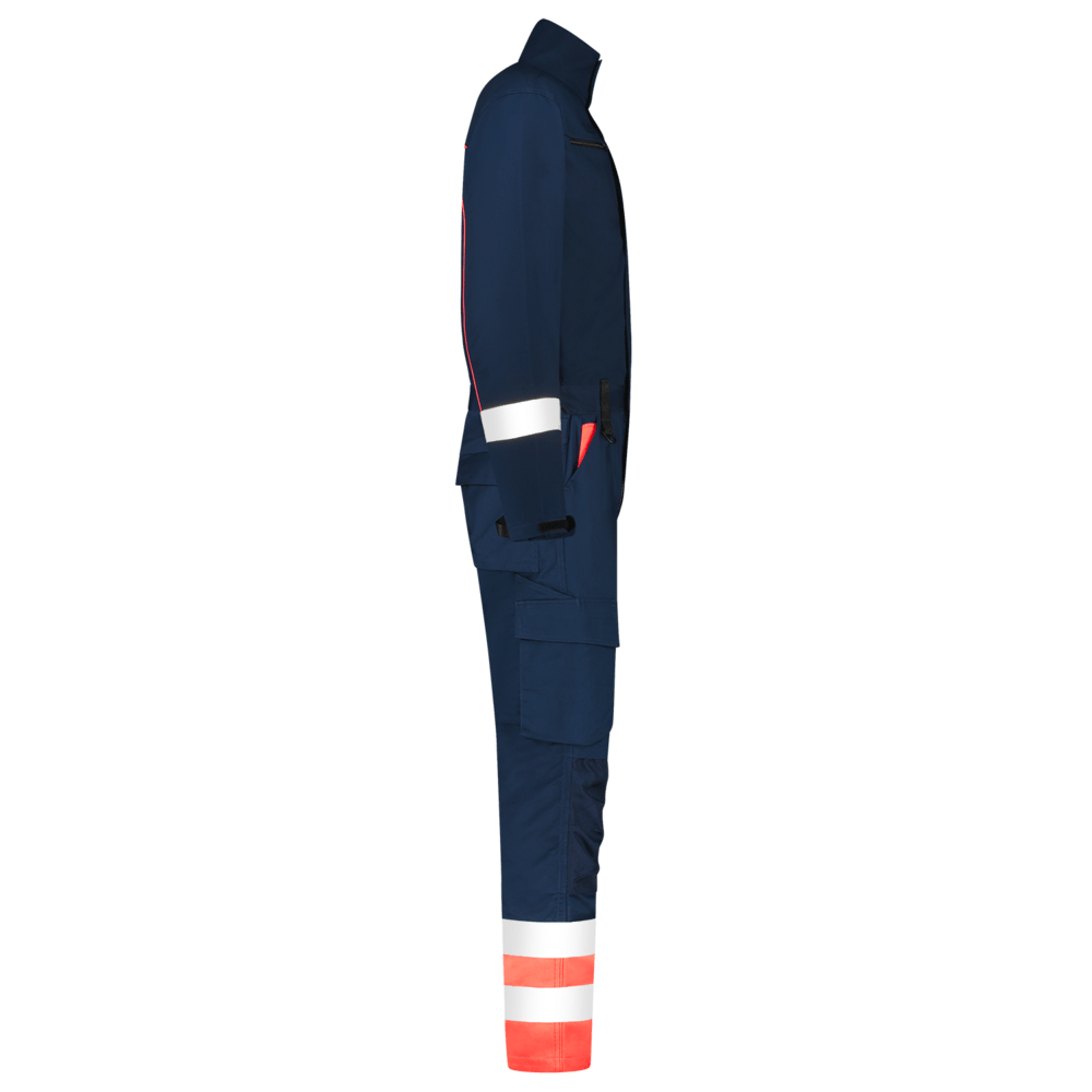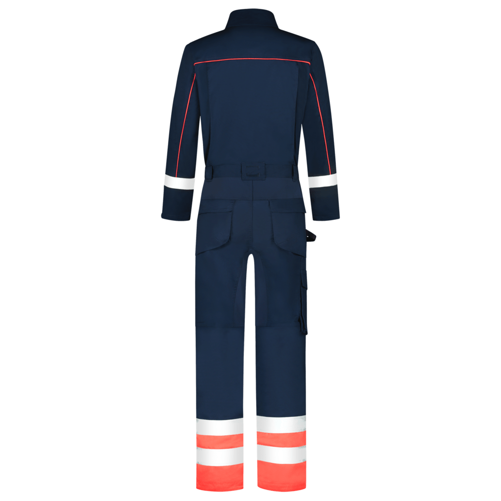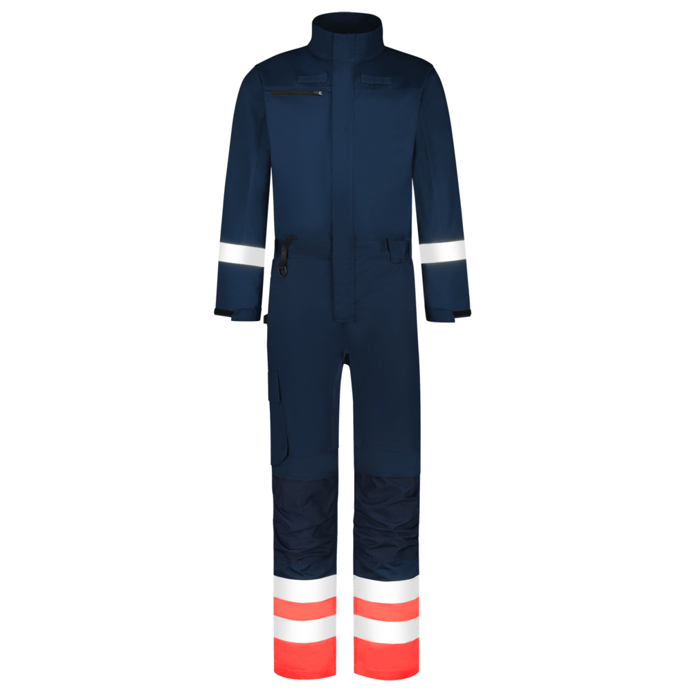De Overall High Vis maakt deel uit van de 20/20 Vision collectie van Tricorp. Deze collectie is er volledig op gericht om de aanwezigheid van de gebruiker visueel te benadrukken waardoor je extra goed opvalt tijdens het werk. Tijdens het werk is het natuurlijk erg belangrijk om goed te kunnen bewegen, de 4 Way Stretch in het kruis en een stretch deel op het onder rugpand zorgt voor deze optimale bewegingsvrijheid. Hiernaast heeft de overall een verstelbare manchet, een D-ring, hamerlus en duimstokzak. Ter bescherming van de knieën is de Overall High Vis voorzien van extra stevige Cordura kniestukken. De 2-way zipper op het voorpand wordt afgedekt door een stormflap.