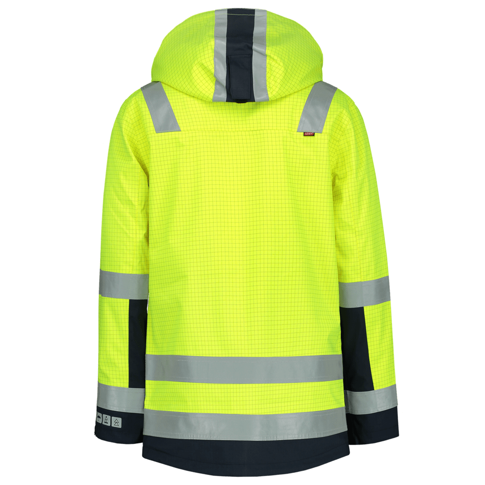 De Parka Mulitnorm uit de Tricorp Safety collectie is vervaardigd uit 98% Polyester en 2% andere vezels met een doekgewicht van 350 gr/m2. Dit product is EN ISO 11612 (bescherming tegen hitte en vlammen) en EN 1149 (bescherming tegen elektrostatische eigenschappen) gecertificeerd.