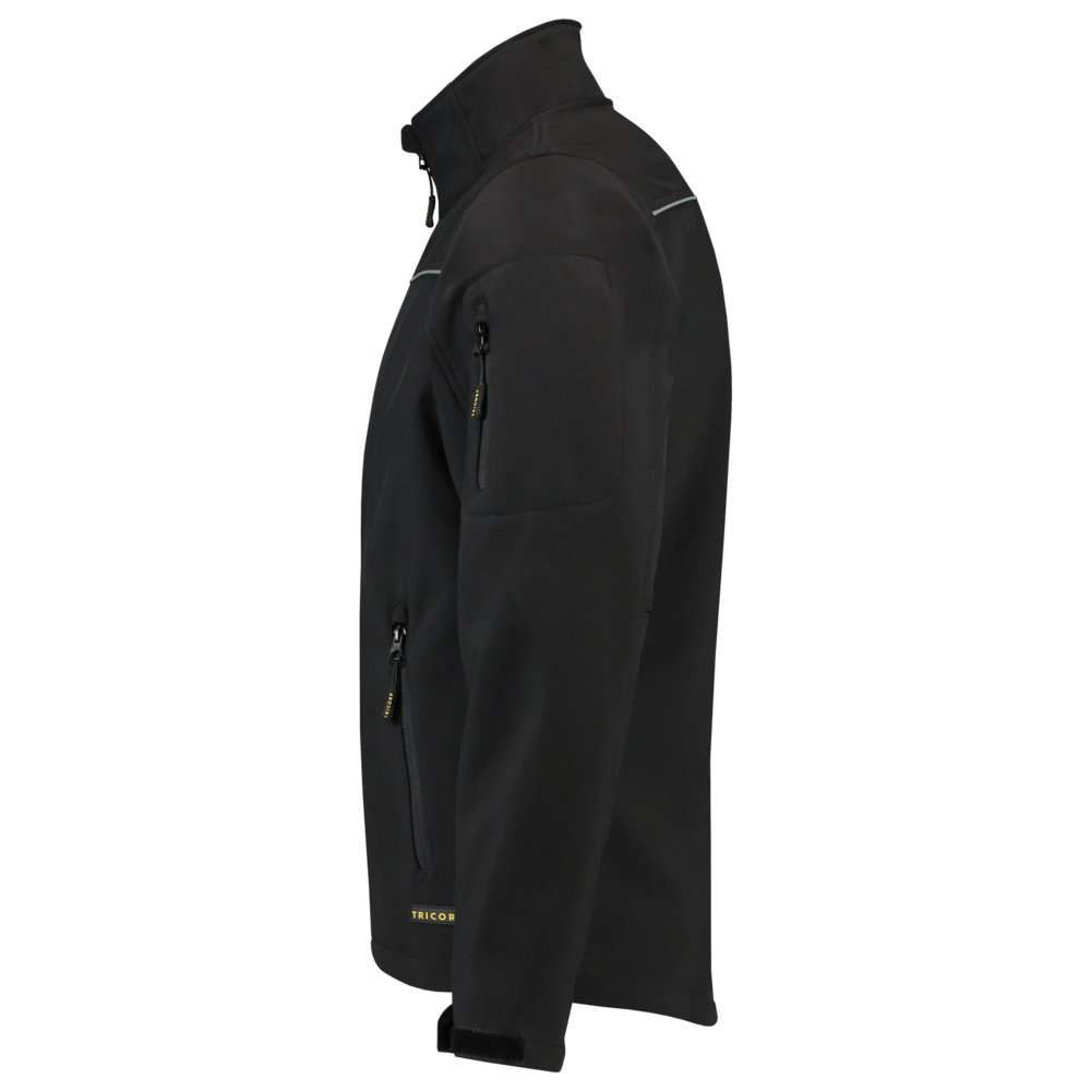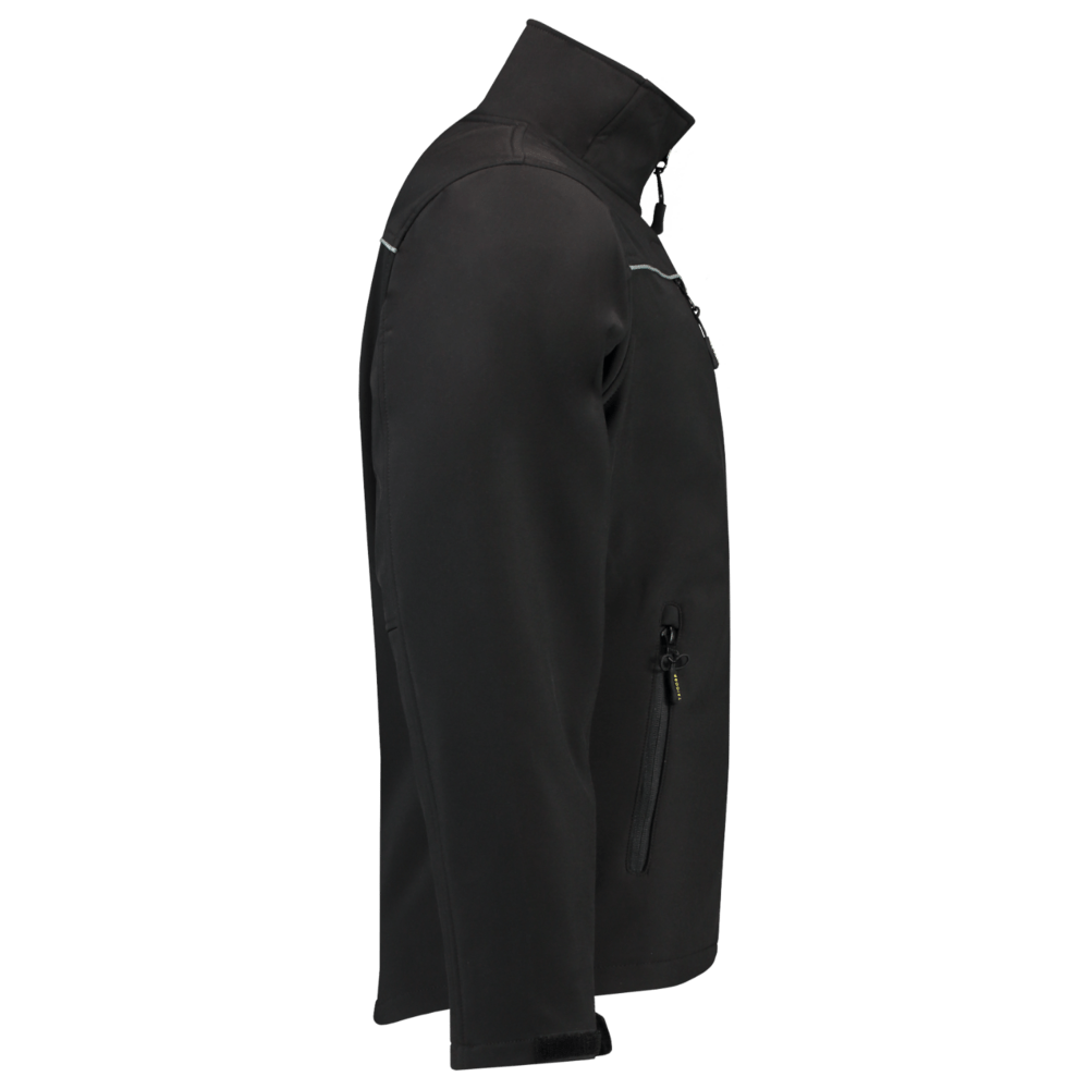 Een softshell is een soepele, comfortabele jas die ook waterafstotend en winddicht is. Het materiaal is gemaakt van een gewoven polyester. Het gebruik van een PU tussenlaag zorgt ervoor dat het ademend vermogen optimaal blijft en je dus niet gaat zweten. De rekbare stof zorgt ervoor dat je je bewegingsvrijheid behoudt. De softshell bevat stretch voor extra draagcomfort. Tevens is de jas beter zichtbaar door de reflectiepiping op de borst. Dit kledingstuk is voorzien van een gelamineerde rits voor een luxe uitstraling. De onderzijde van de jas is middels een elastisch koord met stoppers te verstellen en de manchetten zijn door middel van klittenband te verstellen. De Softshell is aan de voorzijde voorzien van 4 zakken en biedt daardoor veel opbergmogelijkheden. Ook heeft deze jas een binnenzak welke gebruikt kan worden voor het opbergen van de telefoon. Om doorbloeden te voorkomen raden wij aan om alleen druktechnieken te gebruiken die geschikt zijn voor softshell stoffen.