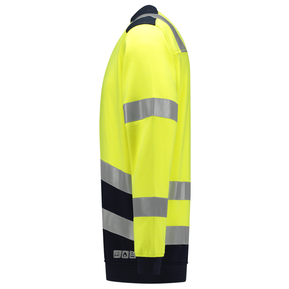 De Sweater Multinorm Bicolor heeft een eigentijdse uitstraling en is vervaardigd uit 60% modacryl, 39% gekamd katoen en 1% andere vezels met een doekgewicht van 260 gr/m2. Dit product is EN ISO 20471 (high vis), EN ISO 11612 (bescherming tegen hitte en vlammen) en EN 1149 (bescherming tegen elektrostatische eigenschappen) gecertificeerd.
