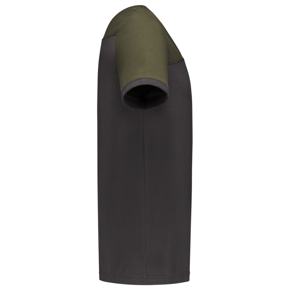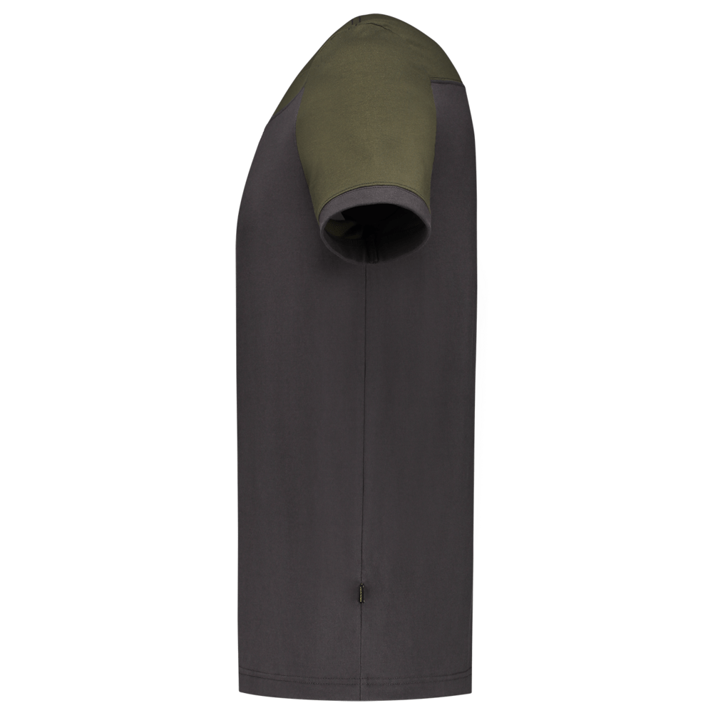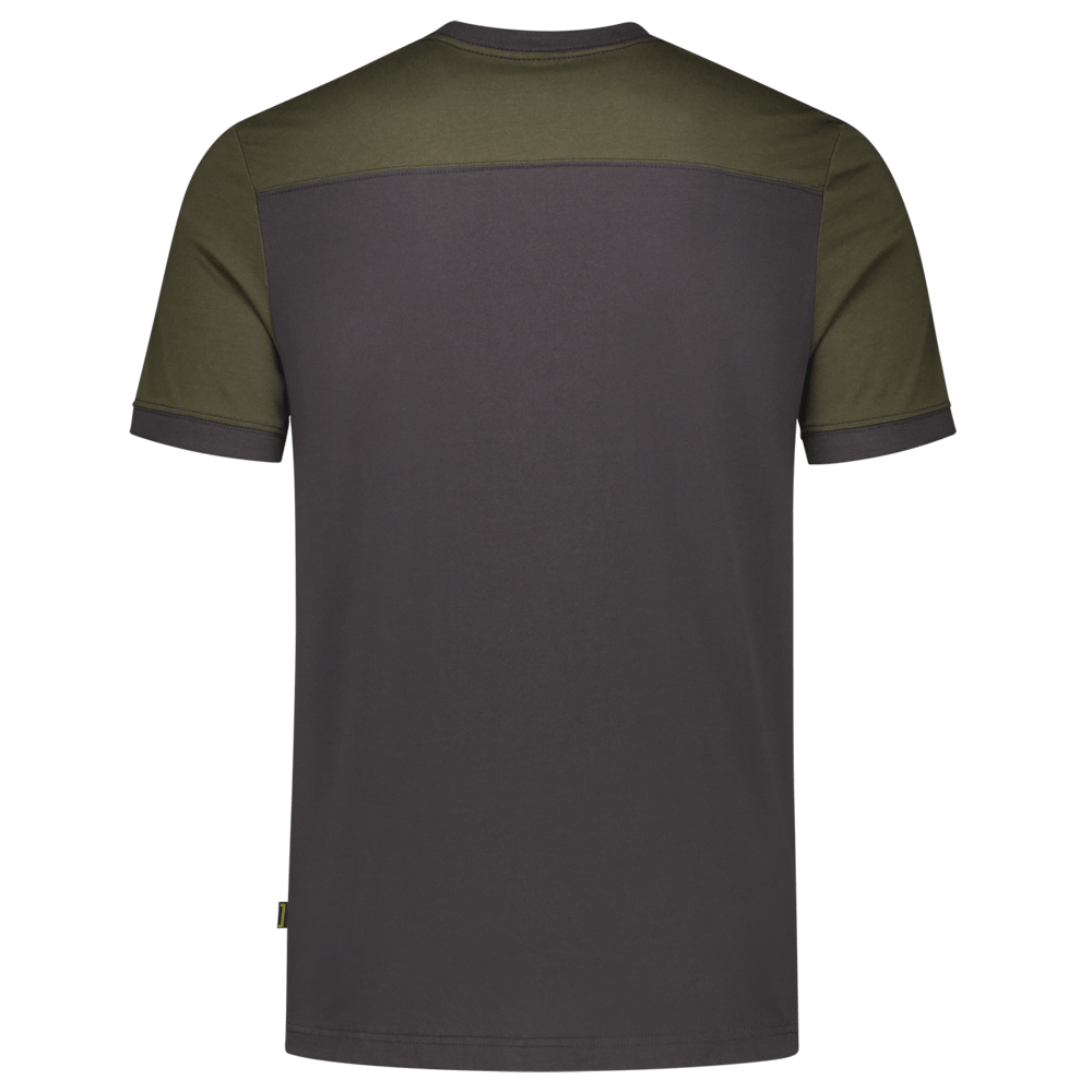 Het nieuwe bicolor design heeft een schuine naad op de borst. Het T-shirt is op 60 graden wasbaar en daarna snel te drogen in de droger. Met de maar liefst 12 kleurcombinaties, heeft u een ruime keuze aan producten welke u kunt laten aansluiten bij de huisstijl van uw bedrijf.