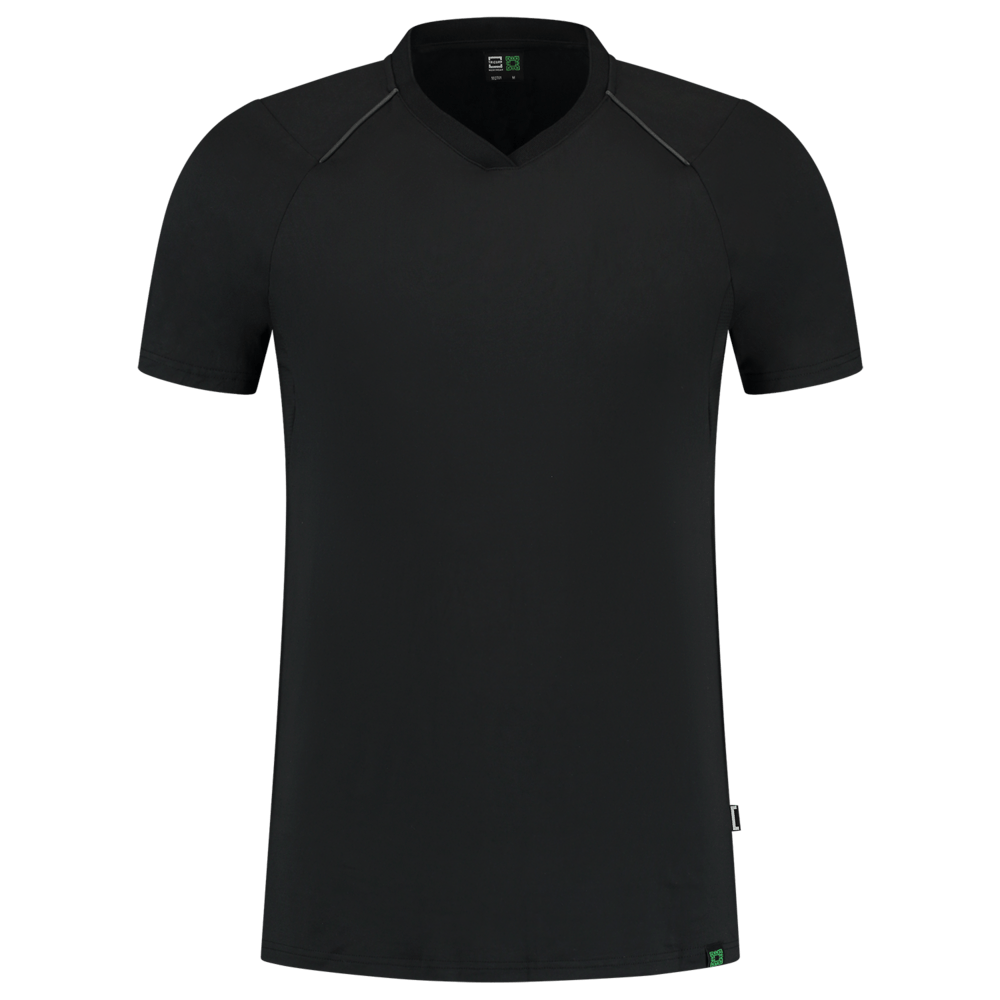 Het duurzame T-shirt V-Hals RE2050 heeft een sportieve en moderne belijning. Dankzij het lichte gewicht en de fijne stretchkwaliteit draagt het shirt erg comfortabel. Dit T-shirt bevat de Polygiene® technologie. Polygiene® is een permanente finish op basis van zilverchloride wat vervelende geuren tegen gaat. Dit heeft als voordeel dat de professional het shirt meerdere dagen kan dragen wat resulteert in minder wasbeurten en dus minder waterverbruik, minder energieverbruik en bovenal behoud van kwaliteit van het artikel. De reflective piping geeft het shirt een sportieve en moderne look en zorgt voor reflectie details. Voor extra ventilatie is onder de oksels mesh doek gebruikt. T-shirt V-Hals RE2050 is onderdeel van het RE2050 kledingpakket: een duurzaam en circulair kledingpakket. Dit T-shirt is gemaakt van 92% recycled polyester en 8% elastaan. Dankzij het gebruik van recyclede PET-flessen is de CO2-uitstoot lager en verbruiken we minder water en energie tijdens de productie dan bij een shirt met virgin polyester! Dit item is verkrijgbaar in de kleuren Ink en Black en in de brede maatrange XS-5XL.