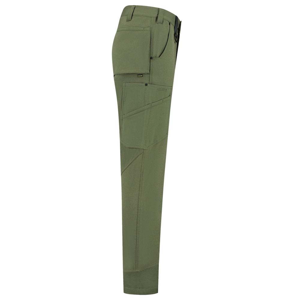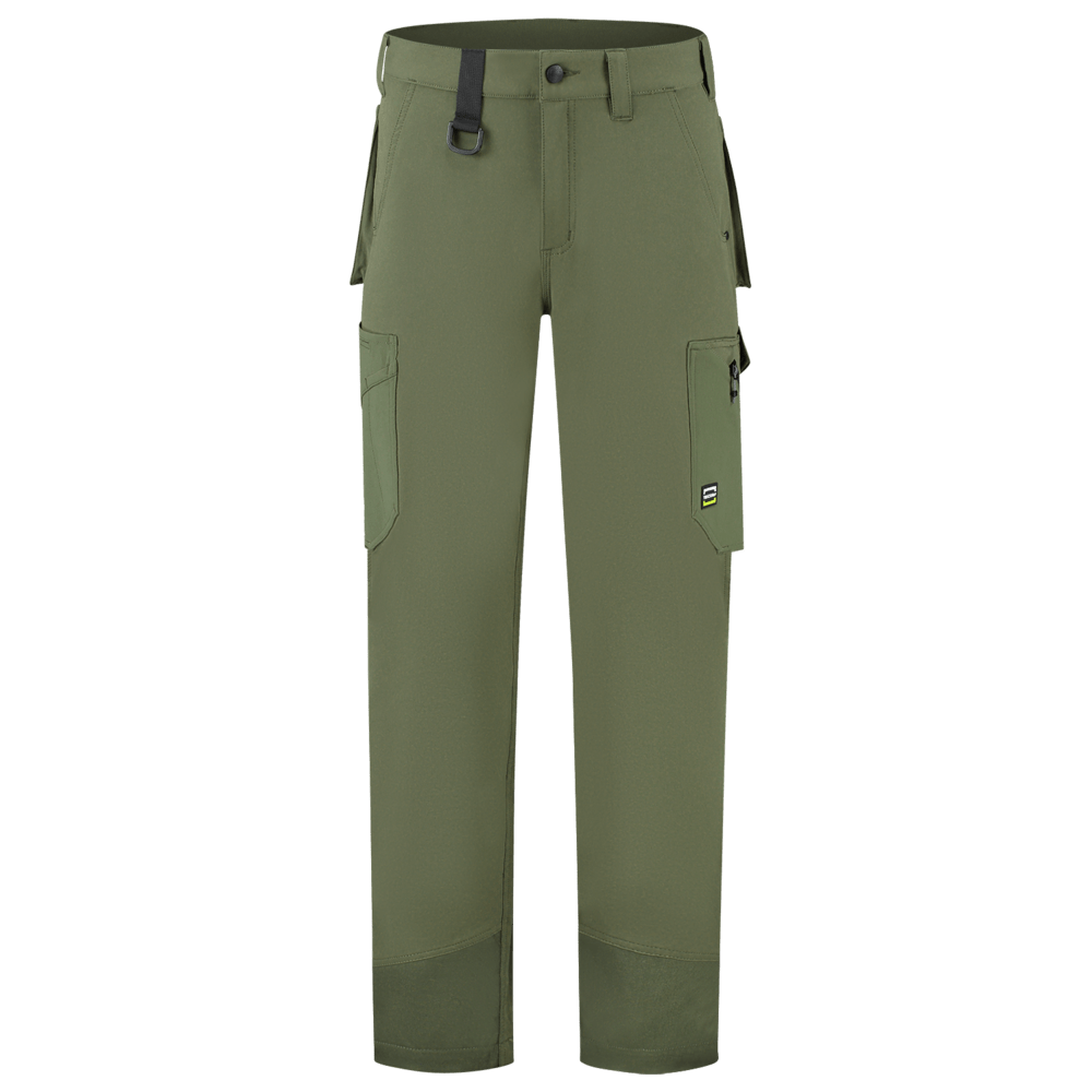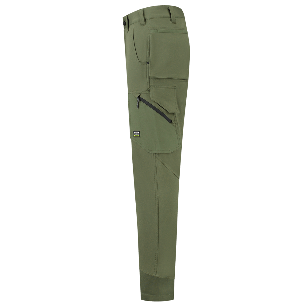 De stretch werkbroek heeft een voorgevormde pasvorm wat de broek extra comfortabel maakt. De slijtvaste stof Cordura® verstevigt de broek op de dijbeenzakken en bij de uiteinden van de broekspijpen. De verschillende zakken bieden voldoende opbergmogelijkheden voor al je materiaal. Heb jij lange benen? Deze stretch werkbroek heeft een dubbele zoom voor 6 centimeter extra lengte. Op het achterbeen en de zipperpuller vind je reflecterende accenten voor extra zichtbaarheid. Werk je met een ID-houder? Dan kun je die bevestigen aan de ribstape loop onder de klep van de dijbeenzak.