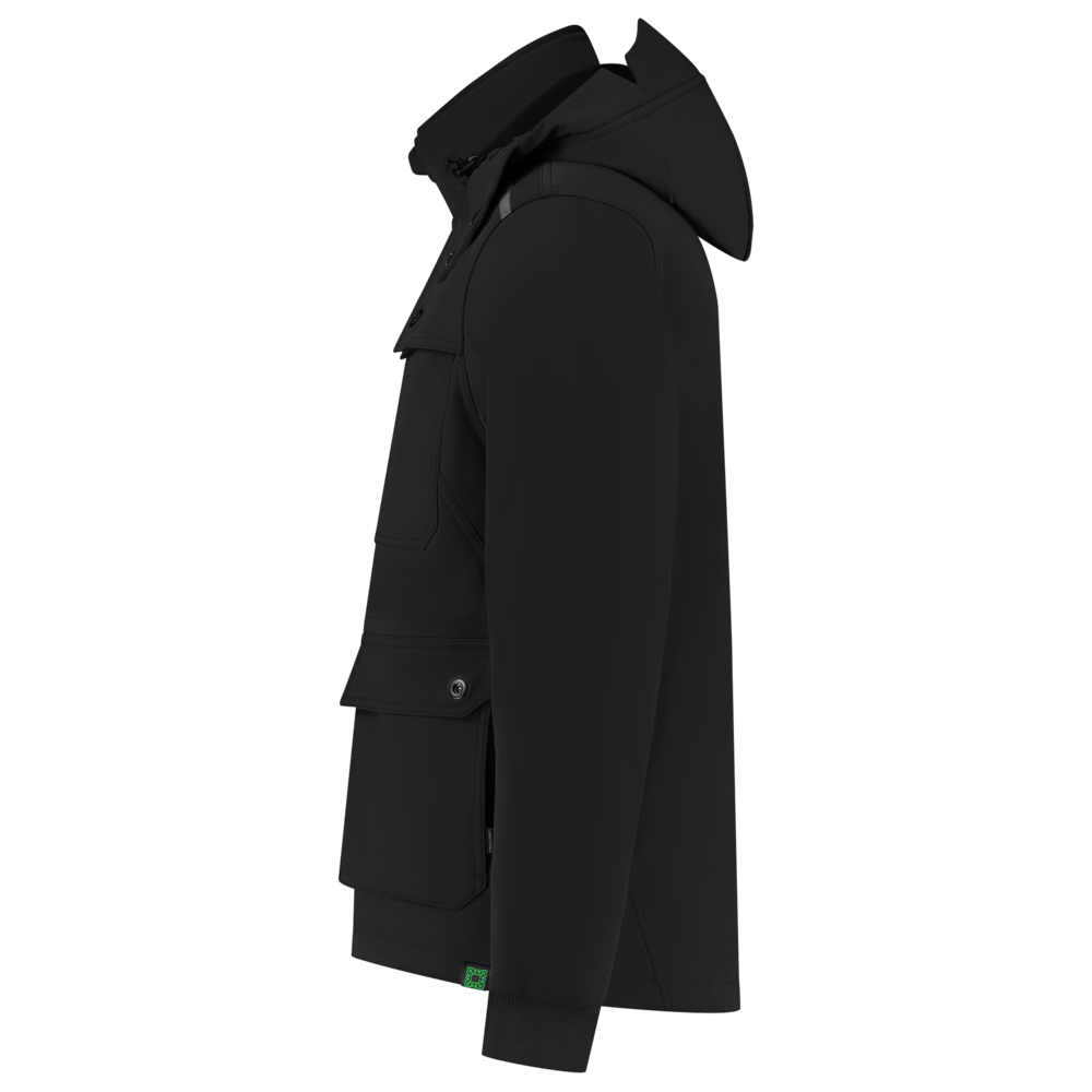 De uitneembare windvanger met antislip elastiek zorgt ervoor dat er geen wind onder jouw jas kruipt. Er zijn voldoende zakken aanwezig om al jouw handige work tools in op te bergen: zakken op het voorpand met intast aan de boven- en zijkant, twee binnenzakken, twee borstzakken afsluitbaar met drukkers en de rechter borstzak heeft een dubbele intast die met rits afsluitbaar is. De capuchon heeft een uitsparing aan de zijkant voor extra zicht en is volledig afneembaar middels drukkers. Om extra zichtbaar te zijn in het donker, is er op de schouders, de capuchon en op het achterpand een reflecterende print toegevoegd. Er is ook een printerrits aanwezig zodat je de jas eenvoudig kunt bedrukken. Maak je outfit compleet met de overige items uit de Rewear collectie.